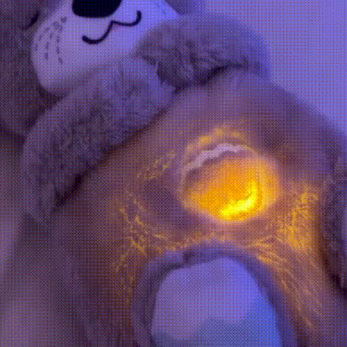 Movimiento de respiraciĂłn: su barriguita sube y baja imitando una respiraciĂłn real.